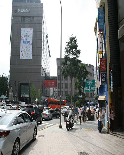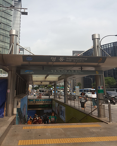 明洞駅5番出口で新世界(シンセゲ)百貨店方向に3分角の右側に位置