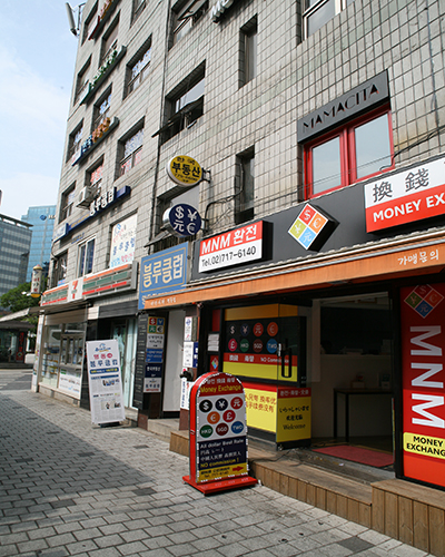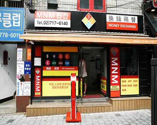 明洞駅5番出口を出て前方に2分、右の道、両替所