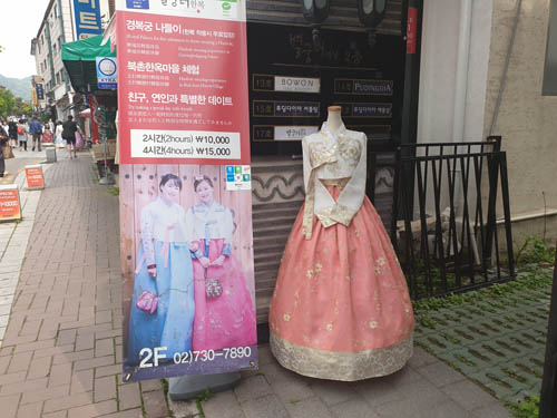 韓服レンタルでソウルの町並みを歩きまわる(2時間10000ウォン/4時間15000ウォン)