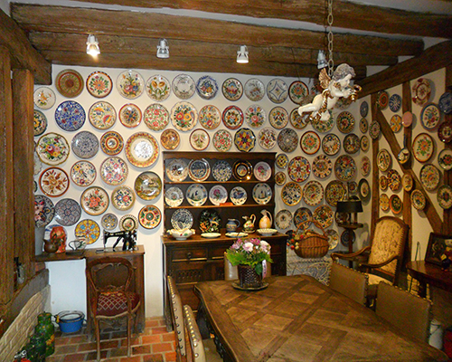 しっかりとフランスの雰囲気が味わえるようにフランスから輸入したお皿や人形も展示されています。