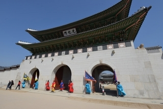 その他のおすすめと言えば、光化門・興礼門の広場で、朝鮮時代の守門軍の交代儀式を再現した王宮守門将交代儀式が行われています。儀式の合間は伝統衣装を身にまとった守門将と一緒に写真を撮ることも可能です。