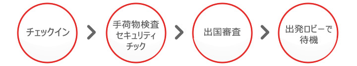 手荷物検査とボディチェックを受けます。帽子、コートやブーツ類は脱ぎ、金属類は外しておきましょう。液体類やライターなどの機内持ち込みは日本出国時と同様に制限されています。 ※朝夕、週末は混みあい、特に仁川国際空港は利用客も多いため、チェックインを済ませたらすぐに出国ゲートに向かうのがよいでしょう。3.出国審査